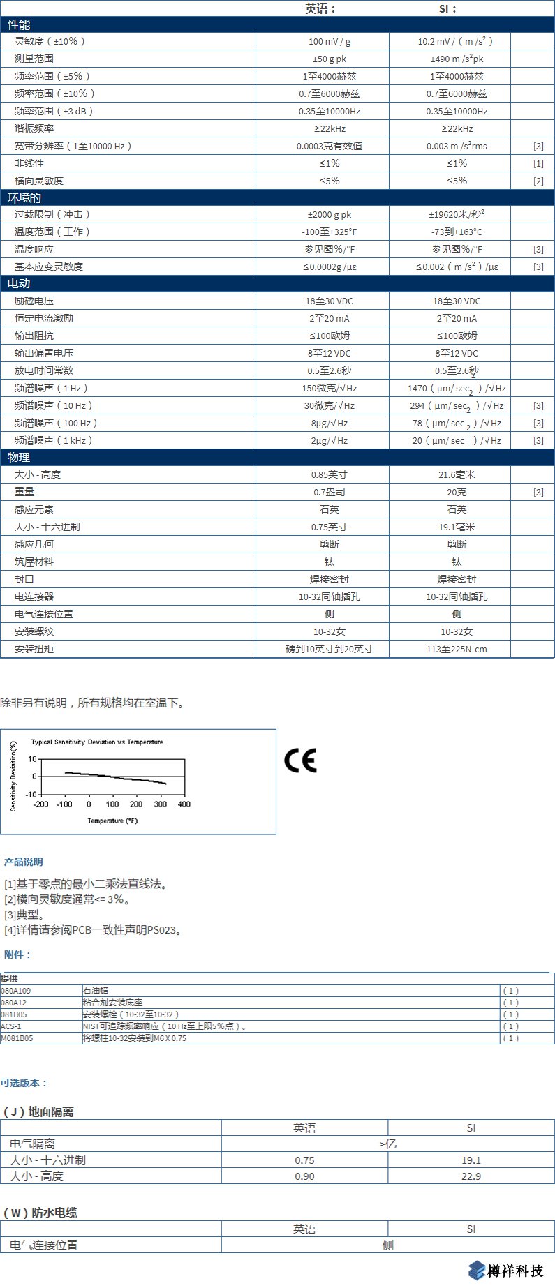 ESS靈敏度,石英剪切ICP?加速,100 mV / g,1至4k Hz,10-32側(cè)連接,至+325?F / + 163?C靈敏度:(±10%)100 mV / g(10.2 mV /(m /s2))測(cè)量范圍:±50 g pk(±490 m /s2pk)寬帶分辨率:0.0003 g rms(0.003 m /s2rms)頻率范圍: