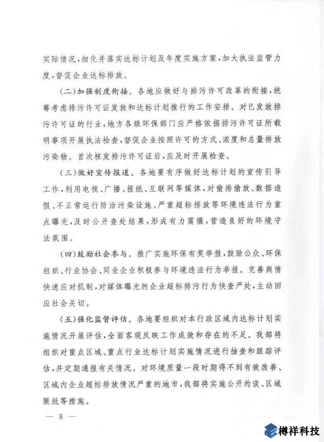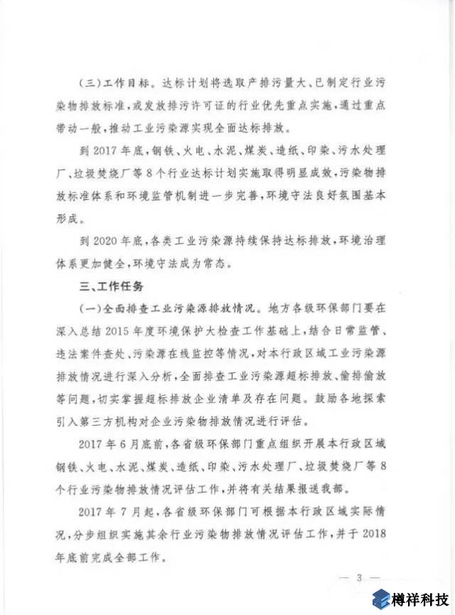 環(huán)境保護(hù)部日前發(fā)布《關(guān)于實(shí)施工業(yè)污染源全面達(dá)標(biāo)排放計劃的通知》(以下簡稱《通知》),要求到2017年底,鋼鐵、火電、水泥、煤炭、造紙、印染、污水處理廠、垃圾焚燒廠等8個行業(yè)達(dá)標(biāo)計劃實(shí)施取得明顯成效,污染物排放標(biāo)準(zhǔn)體系和環(huán)境監(jiān)管機(jī)制進(jìn)一步完善,環(huán)境守法良好氛圍基本形成。到2020年底,各類工業(yè)污染源持續(xù)保持達(dá)標(biāo)排放,環(huán)境治理體系更加健全,環(huán)境守法成為常態(tài)。