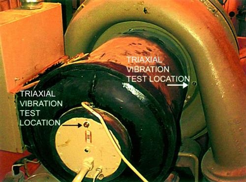 圖1.冷卻器顯示電機(jī)軸承座上的振動(dòng)測試位置。